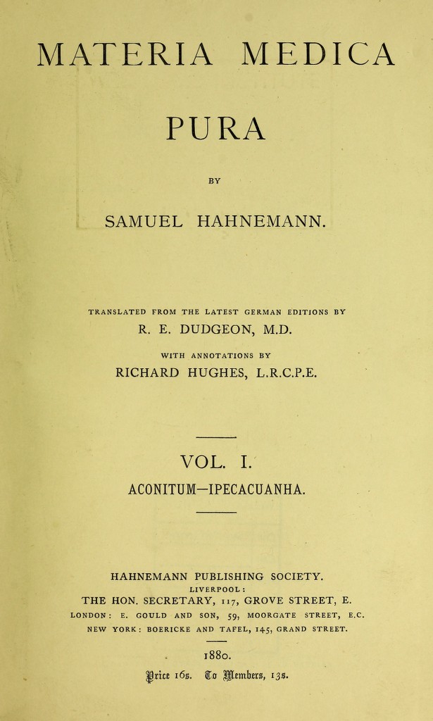 Materia Medica Pura (1811–1821) – první systematické zápisy provingů na zdravých lidech.