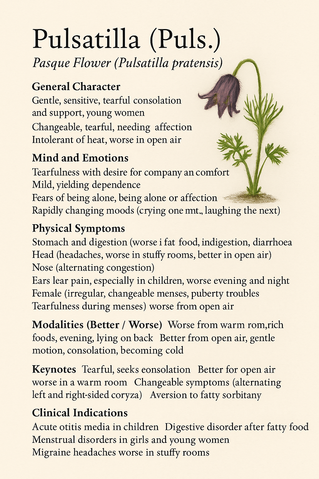 Komplementární: Bor., Hep., Merc., Nat-m., Calc. (zvl. u polochronických a konstitučních stavů).